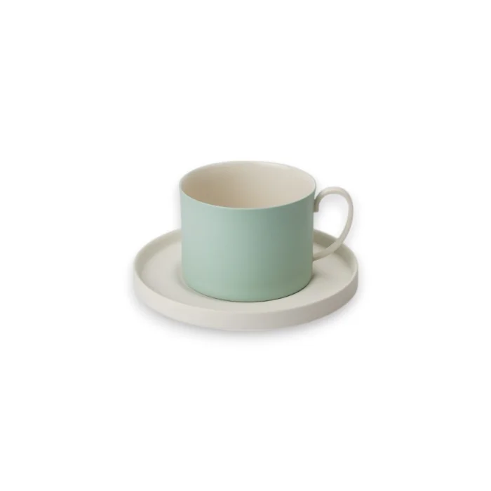 The inner surface of the cup is glossy outside matte The inner surface of the plate is matte