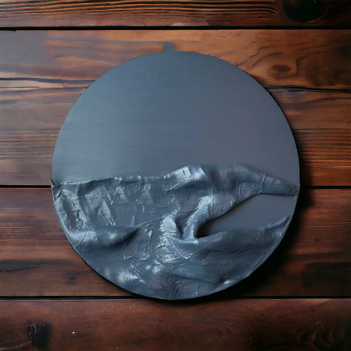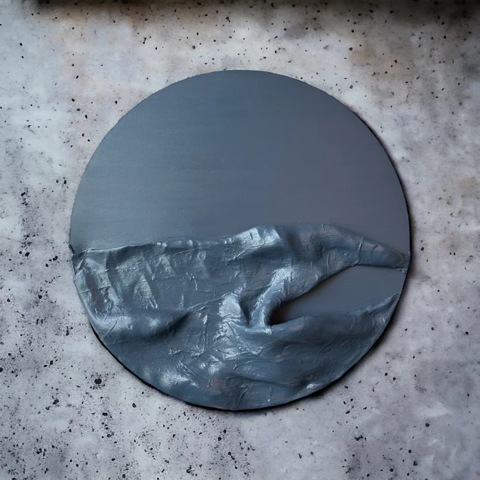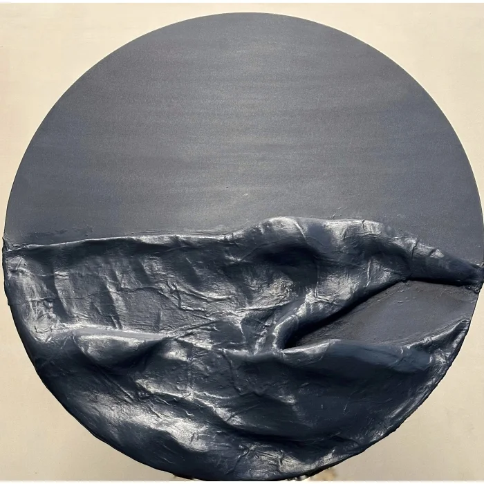 Measuring 120 cm / 47 inches in diameter, this striking piece features a harmonious blend of grey tones.