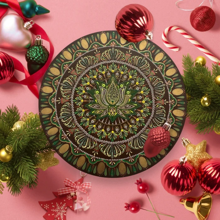 This unique mandala artwork brings a harmonious and artistic touch to any space.