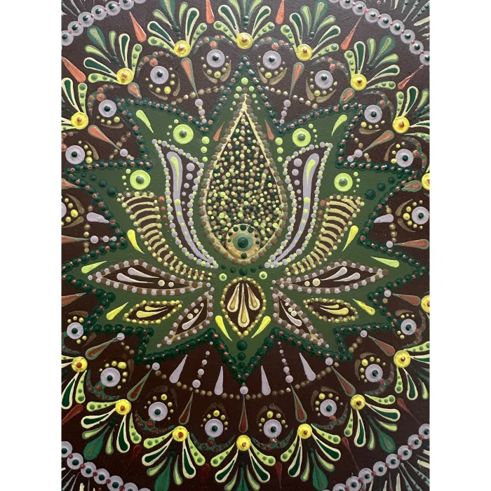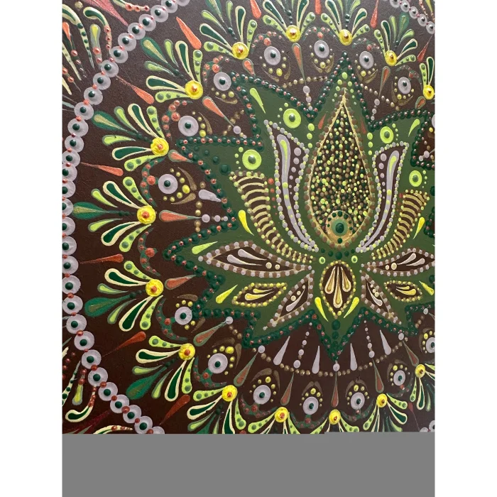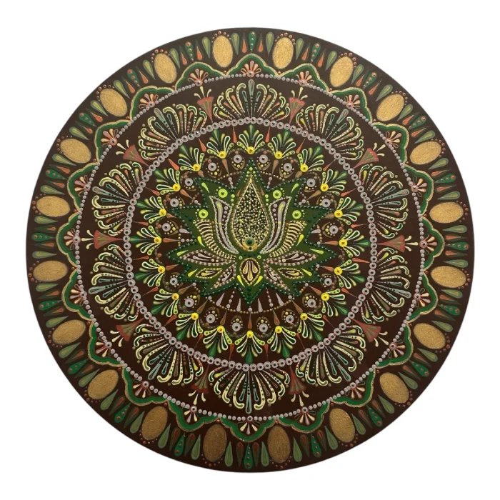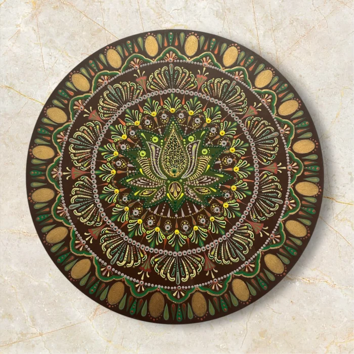 "Lotus Mandala" is an original, one-of-a-kind artwork, entirely handcrafted using acrylic on wood. The piece shown in the photos will be delivered with the artist’s signature.