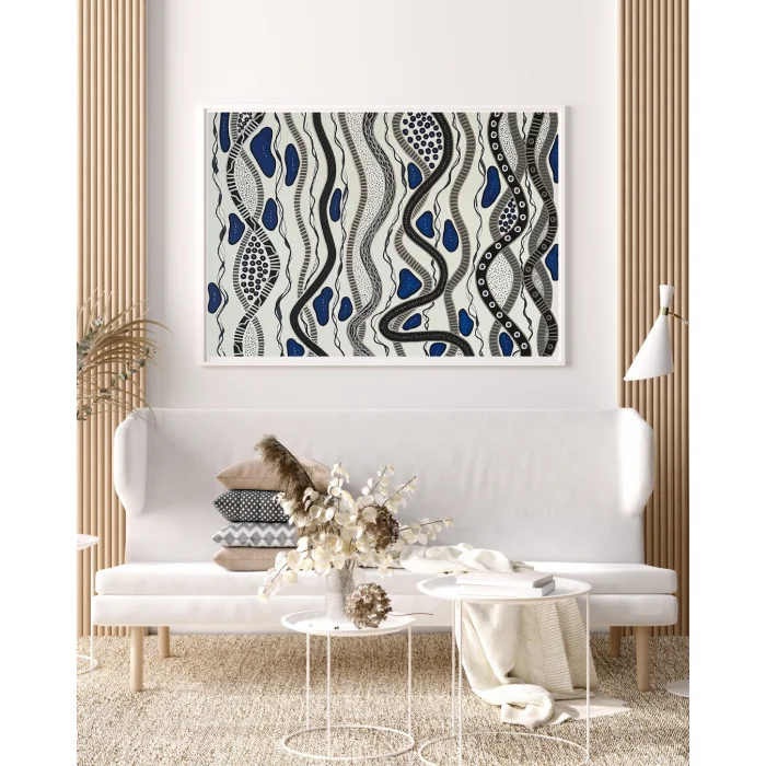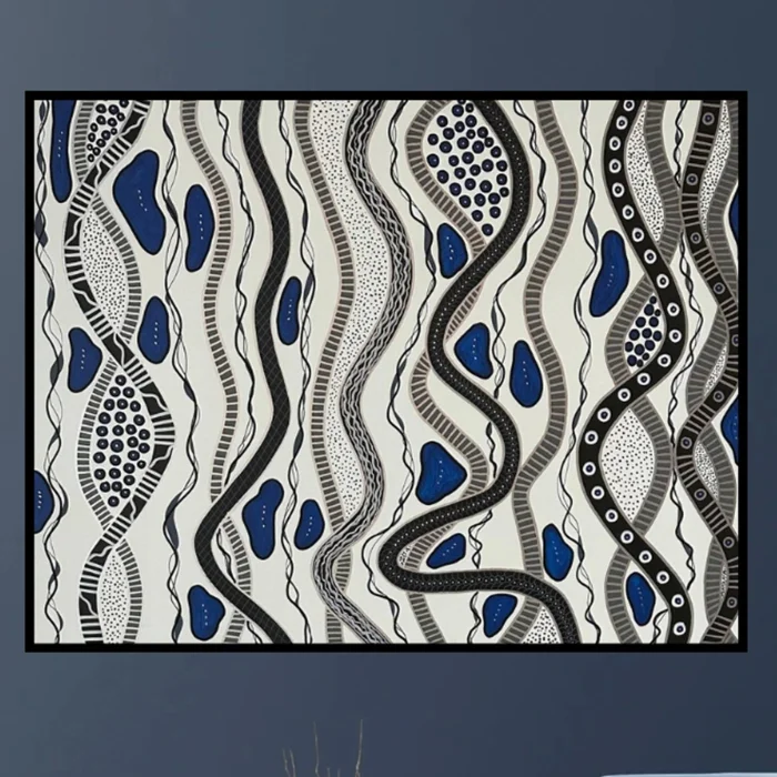 Titled “Strings”, this original acrylic painting on canvas is a one-of-a-kind artwork. It will be delivered exactly as seen in the photographs, complete with the artist’s signature.