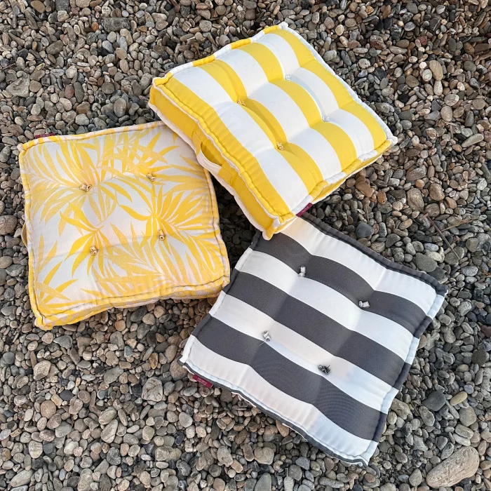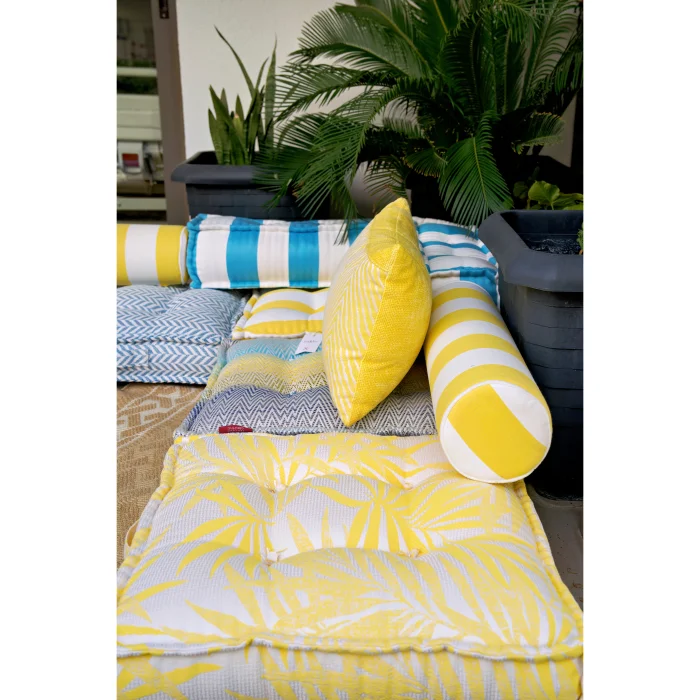 It is made of quality fabric with 65% acrylic and 35% polypropylene content. The resistance of acrylic fibers to sunlight is quite good. Bacteria, fungi, mold and harmful insects do not damage the fibers. The collection consists entirely of outdoor fabrics. It has all the features expected for outdoor use. It is resistant to UV rays, long-lasting, breathable, easy to clean with anti-mildew, anti-bacterial and water-repellent properties. It is designed for use in areas such as terraces, gardens, poolside, boats and yachts **Micro changes can be seen in the dimensions of these handmade products. (-2 cm / +2 cm) *Filling content: 100% poly-Siliconized Bead Fiber *Usage Areas: Garden, Terrace, Children's Room, Recreation Room, Cedar Areas, Living Room, Living Room, Balcony, etc.