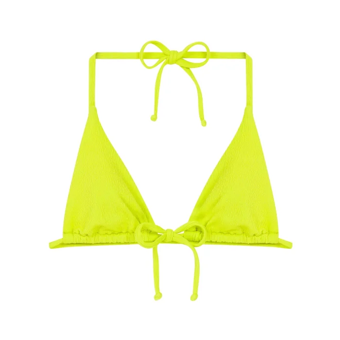 Introducing the Fiji Bikini Top, a vibrant neon yellow beachwear piece from the Scent of Summer Collection Designed for a soft touch and comfort, it's perfect for soaking up the sun. Get creative and mix and match this versatile top with other pieces from the collection for your own unique beach style.