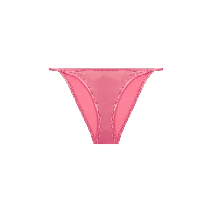The "Honeybunny" bikini bottom radiates a sweet allure in lustrous pink. Designed for both comfort and style, its seamless cut and sparkling finish make it a delightful addition to your beachwear. Pair it effortlessly with a variety of our tops, from the playful "Maneater" to the serene "Sounds of the Ocean", and the eye-catching "Sweetheart". Ideal for those who love to mix and match, this bottom is a staple piece that offers endless styling possibilities. Whether lounging by the pool or frolicking by the seaside, the "Honeybunny" bottom brings a touch of sweetness to your swimwear ensemble.