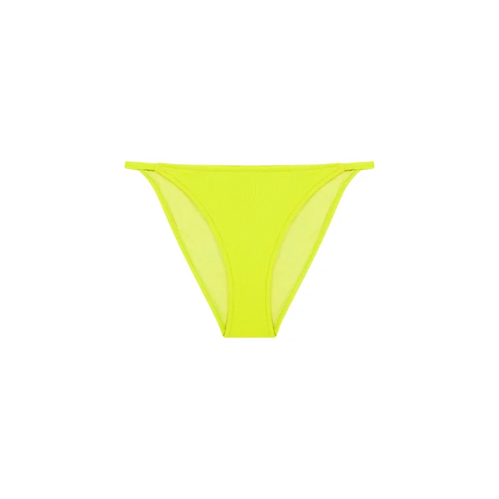 This neon yellow bottom pairs perfectly with any top for a standout style, embodying Fifth Sense's commitment to sustainable, versatile, and fashionable beachwear