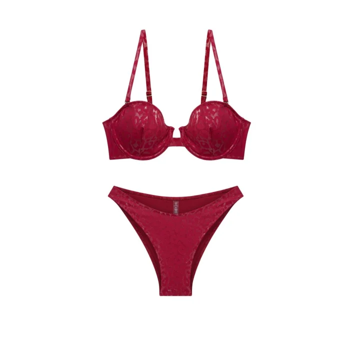 The Lolita set is a testament to timeless beauty, blending rich textures with a striking red palette. The ensemble is designed to provide an elegant fit that flatters and feels comfortable throughout the day. This set is ideal for the fashion-forward individual looking to combine classic sophistication with a hint of playfulness in their beachwear collection.