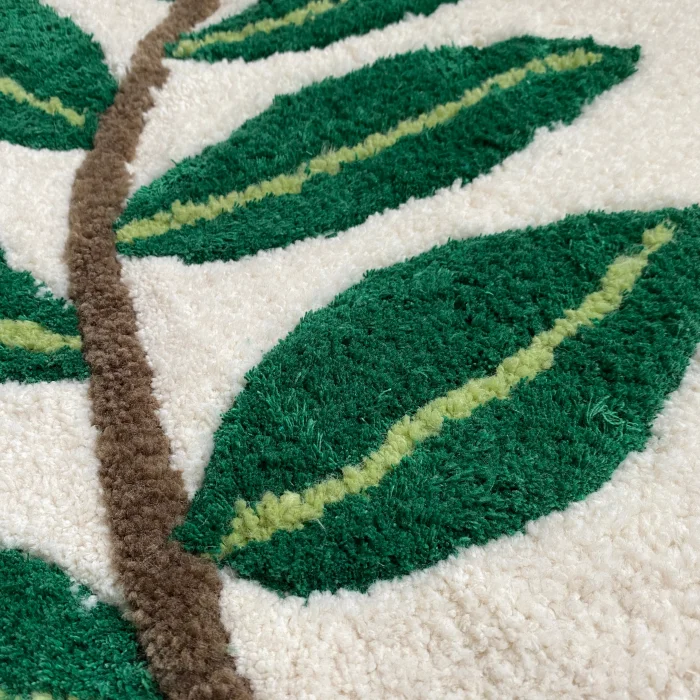 Leaf Carpet The dimensions of our carpet are designed as 70x70. Acrylic and cotton thread are used. Non-Slip Base is used.