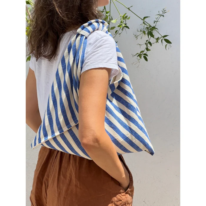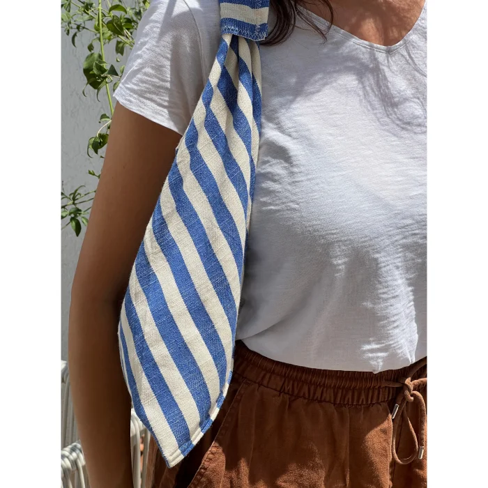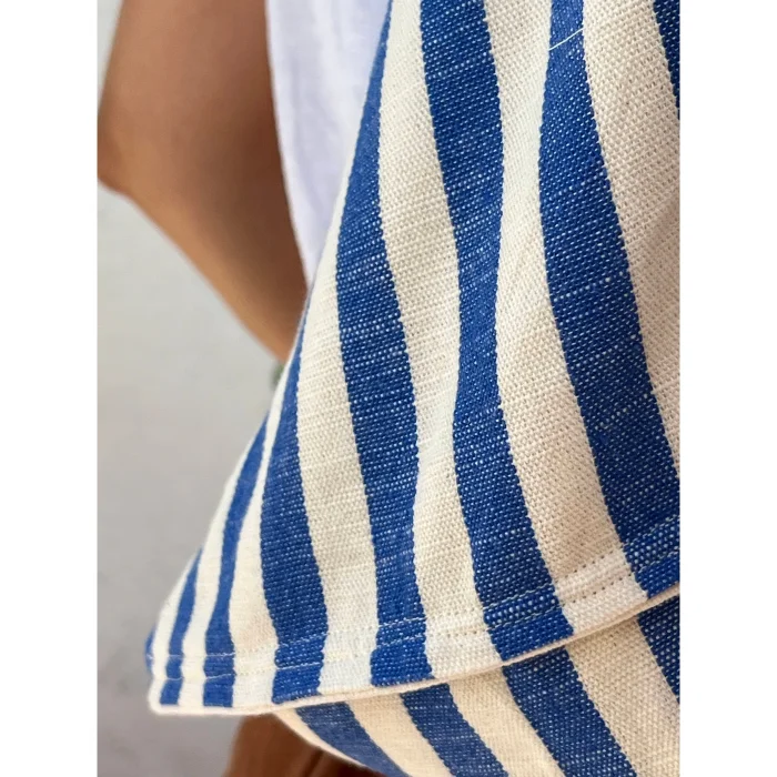 Color: Off white and blue stripes