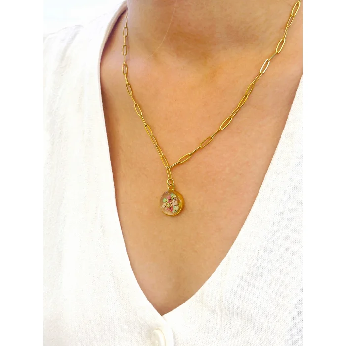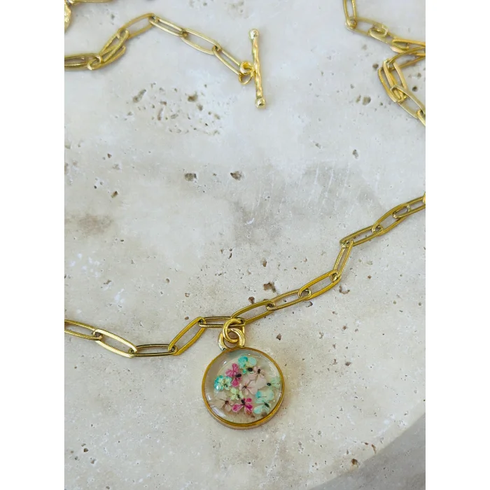 Product: Real Flower Bold Chain Circle Necklace