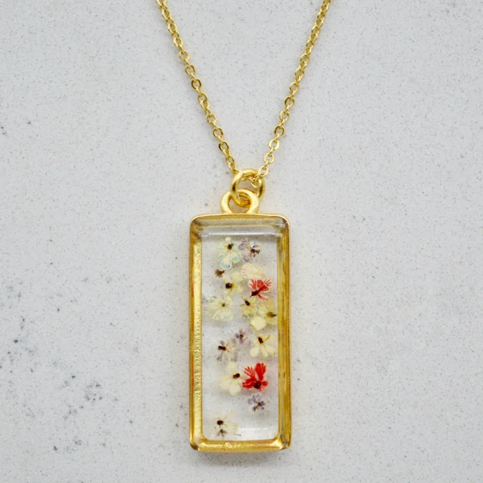 Product: Real Flower Depth Of Pink Rectangle Necklace