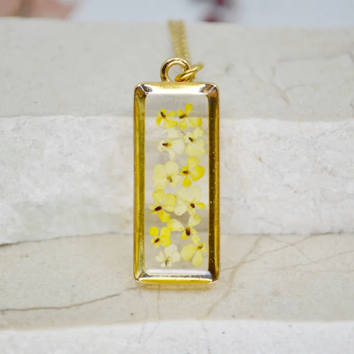 The way the tiny flowers are arranged is unique and no part will be the same as the other, the product will be exclusive only to its owner.The metal parts of the product and the chain are 14 karat gold plated.