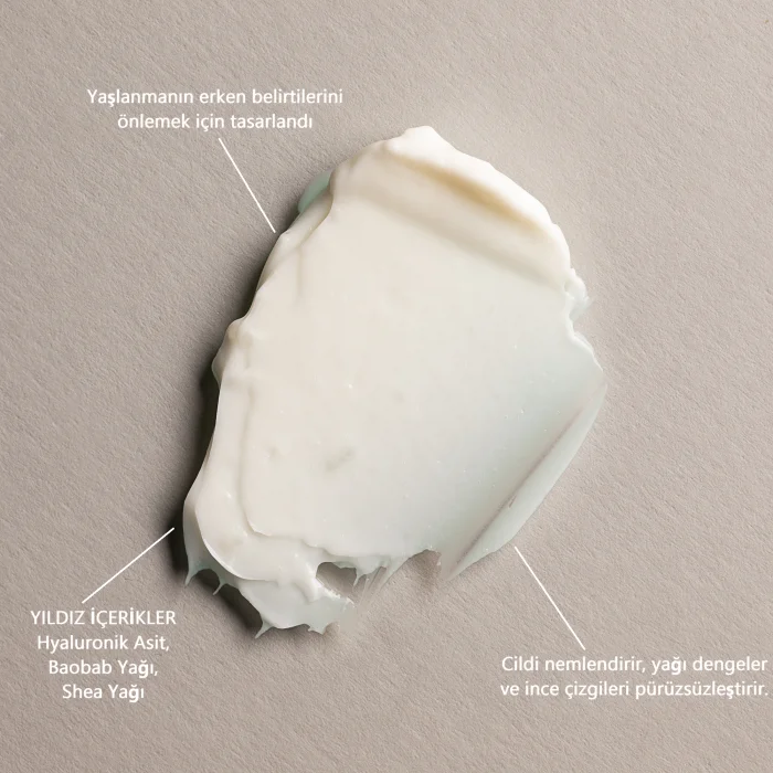 This revolutionary moisturizer aims to perfectly coat the skin and soothe inflammation. It works to nourish it by carrying moisture to the surface of the skin for a moist and radiant skin. Why does it work? Baobab Seed Oil Baobab Seed Oil is excellent for softening the skin and helping to heal imperfections, thanks to its antioxidant properties, plenty of vitamins A, B and C, and omega 3, 6 and 9 fatty acids. Hyaluronic Acid It aims to penetrate deeply into the skin, moisturize, and help improve the appearance of fine lines and wrinkles instantly. Shea Butter Rich in antioxidants and high in Vitamins A and E, Shea Butter aims to work as an emollient to leave skin feeling youthful and supple. It also contributes to skin tightening and reducing the appearance of wrinkles and fine lines.