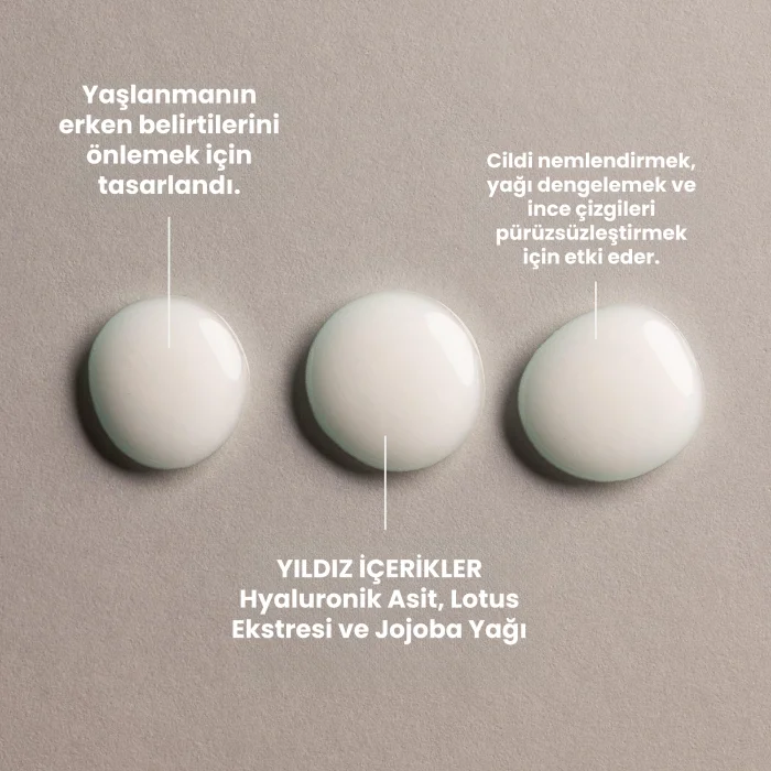 Working to prevent and reduce the first signs of aging, this serum helps counteract the effects of free radicals, redefine facial contours, and promote cell turnover; Why is it effective? Hyaluronic Acid; It aims to deeply hydrate the skin and penetrate deeply for a brighter complexion; Lotus Seed Extract; Lotus extracts have properties that help balance sebum production in the skin; This is especially beneficial for oily skin in preventing pore clogging, acne, and blackheads; Jojoba Oil; It helps reduce the appearance of fine lines and wrinkles while aiming to nourish and protect the skin from environmental stressors.