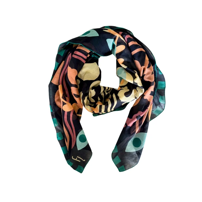 Cotton Pareo 100% Cotton Hand-rolled Our designs are hand-drawn and digitally printed. The edges of our scarves are hand-rolled. Each scarf is delivered in a special box, making it a perfect gift option.