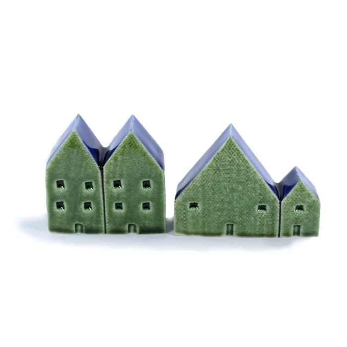 THERE MAY BE SMALL DIFFERENCES BECAUSE IT IS ENTIRELY HAND MADE. EACH PRODUCT IS UNIQUE. MADE USING IMPORTED MATERIALS. TINY DECORATIVE HOUSES. DESIGNED TO ADD MINIMUM MOVEMENT TO YOUR TABLES AND YOUR SHOWCASE. THE PACKAGE CONTAINS 2 HOUSES.