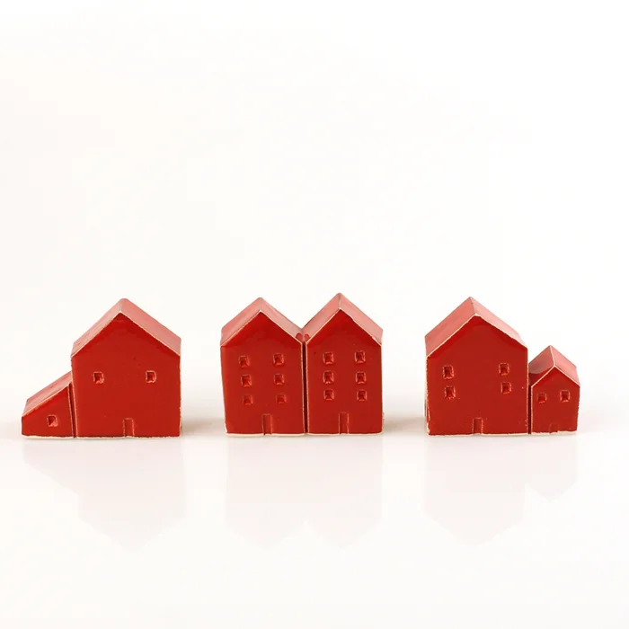 THERE MAY BE SMALL DIFFERENCES BECAUSE IT IS ENTIRELY HAND MADE. EACH PRODUCT IS UNIQUE. MADE USING IMPORTED MATERIALS. TINY DECORATIVE HOUSES. DESIGNED TO ADD MINIMUM MOVEMENT TO YOUR TABLES AND YOUR SHOWCASE. THE PACKAGE CONTAINS 3 HOUSES.