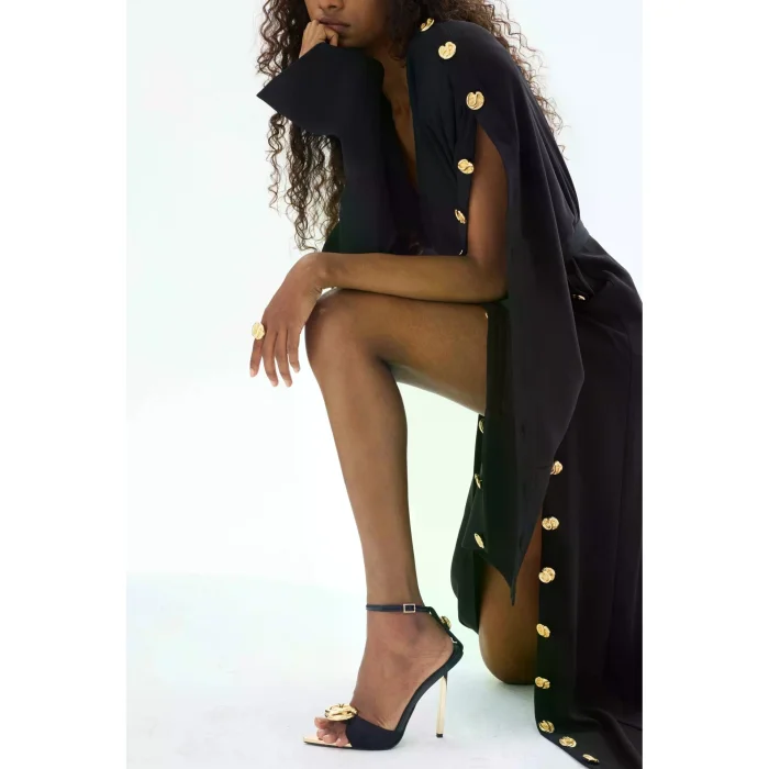 The Black Buttoned Dress highlights your elegance in both casual and formal settings. It can be combined with a blazer jacket in the office environment or complemented with stylish high heels at evening events.