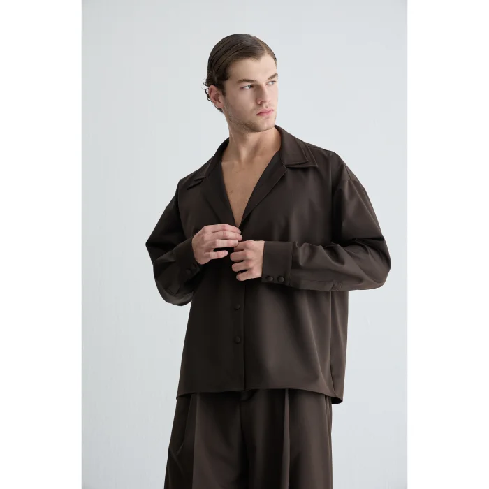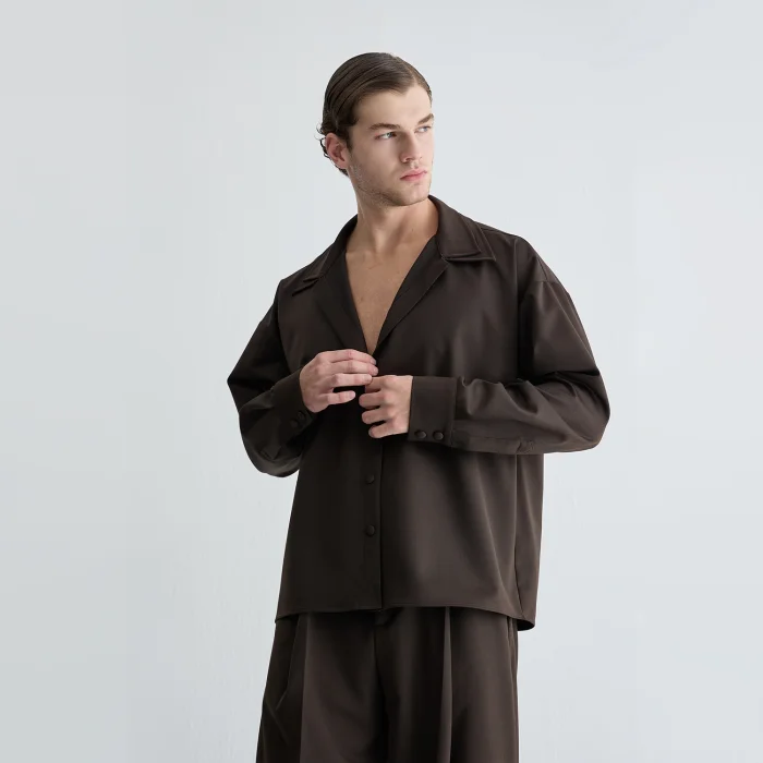 It redefines comfort with its soft textured cotton blend fabric. A modern interpretation that facilitates the transition from day to night with its oversized form and elegant lines.