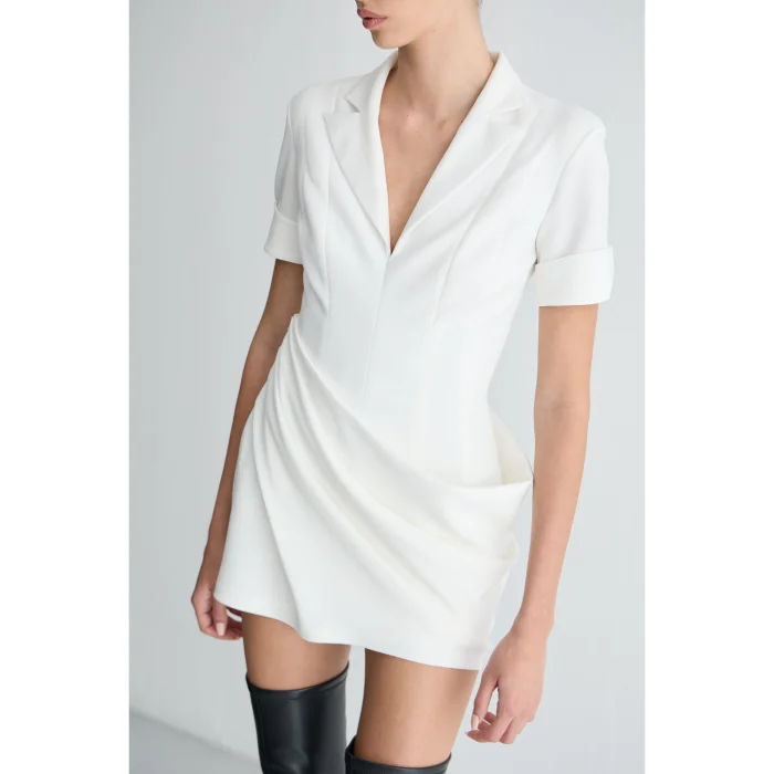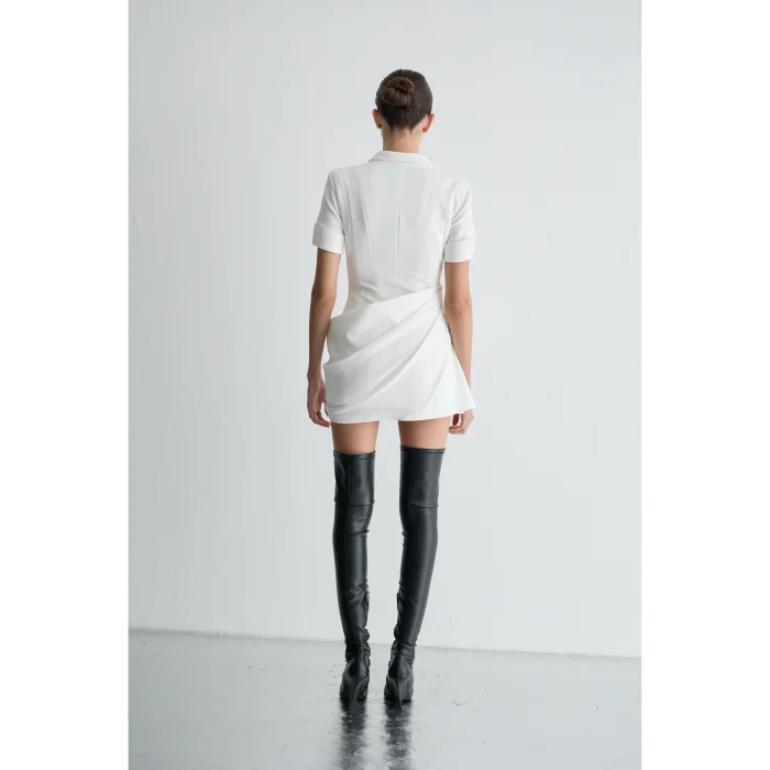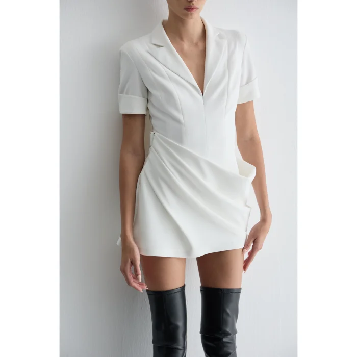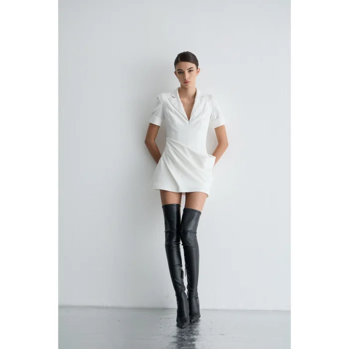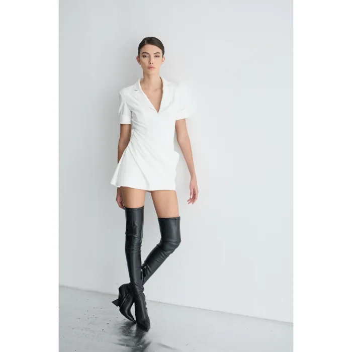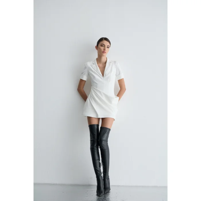 With its polo neck form and the timeless clarity of white, this dress reflects minimalism at its most elegant.