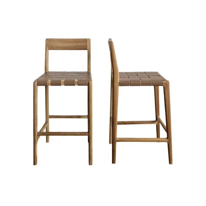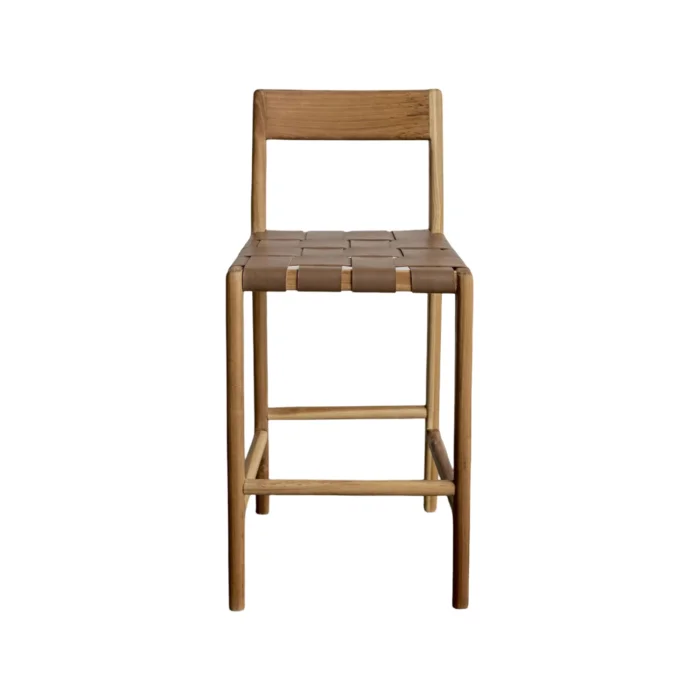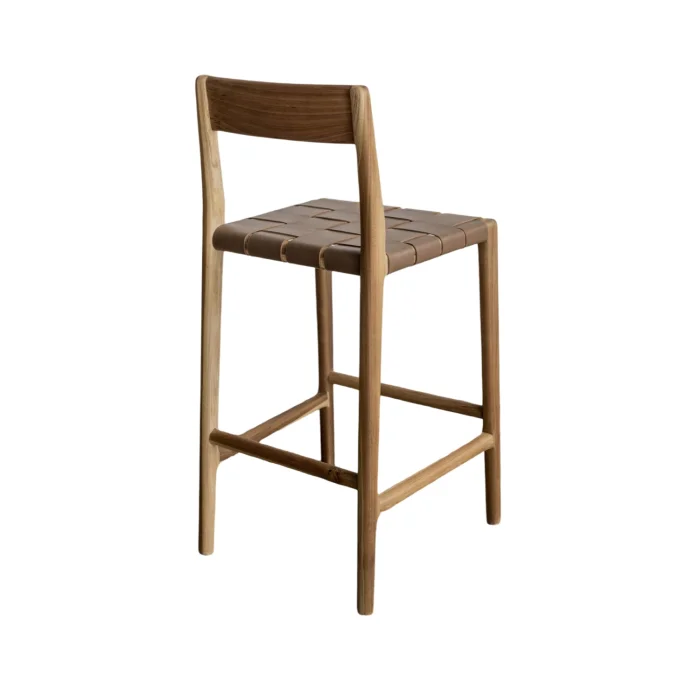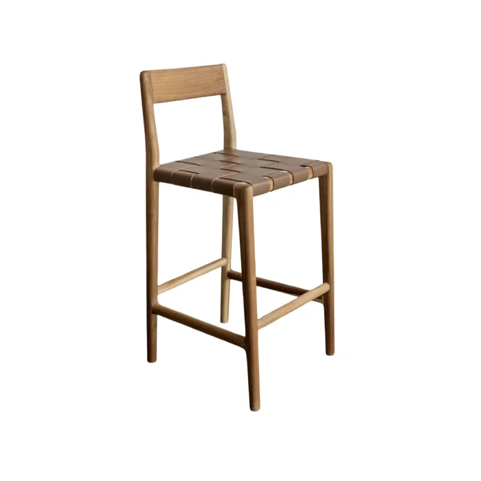 Features: - High quality solid wood and leather - Modern and minimalist lines - Each piece is carefully and meticulously handcrafted. Dimensions Length: 45cm Depth: 43cm Height: 95cm Seat Height: 65cm
