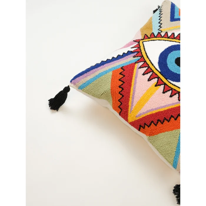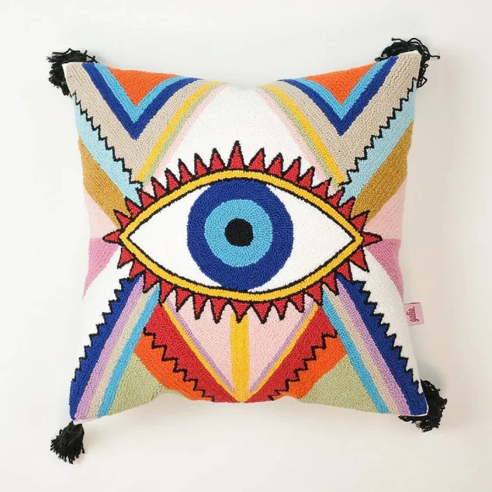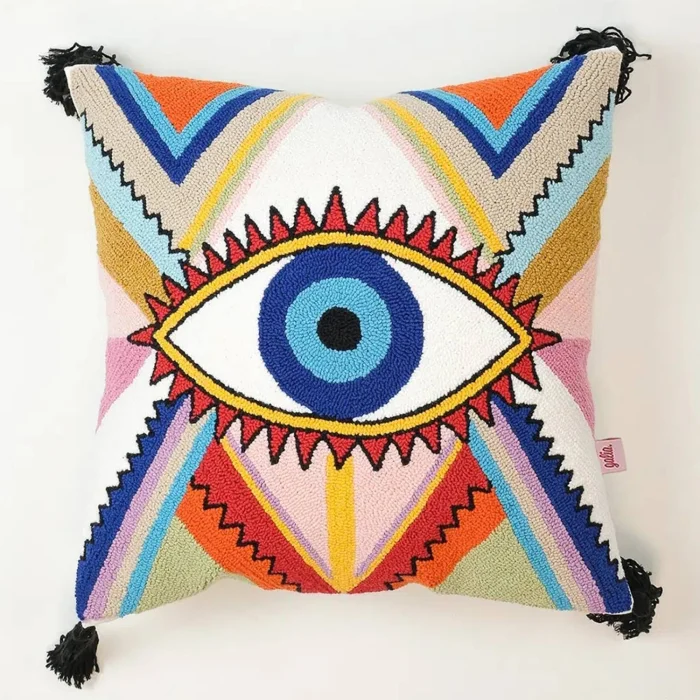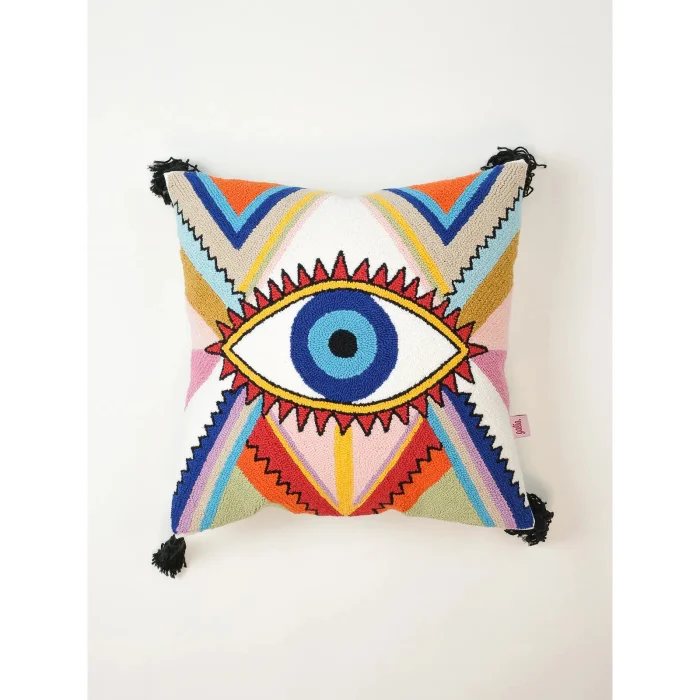 Product: Cosmic Guard - Boho Evil Eye Pillow Cover | Handmade Punch Needle Decorative Cushion