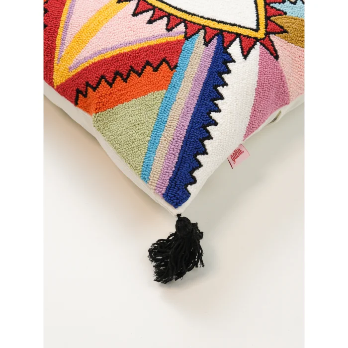 Designed to add both a protective symbol and a vibrant energy to your home, Cosmic Guard attracts attention with its strong evil eye figure and dynamic patterns. The combination of vibrant colors comes to life with handmade punch needle craftsmanship. Boho fits perfectly into modern and eclectic decoration styles.