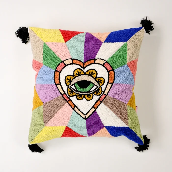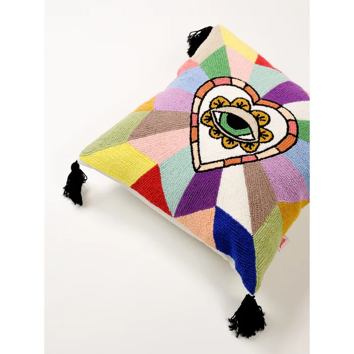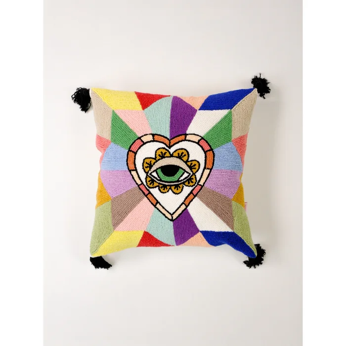 Product: Cosmic Guard - Boho Heart Pattern Pyramid | Handmade Punch Decorative Cushion Cover