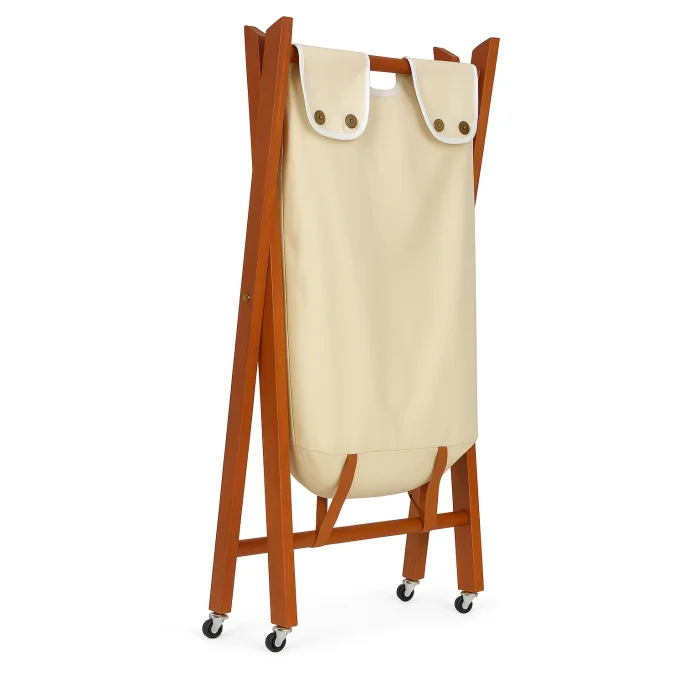 The legs are made of solid beechwood, the detachable tote bag is made of ecru fabric with welts.