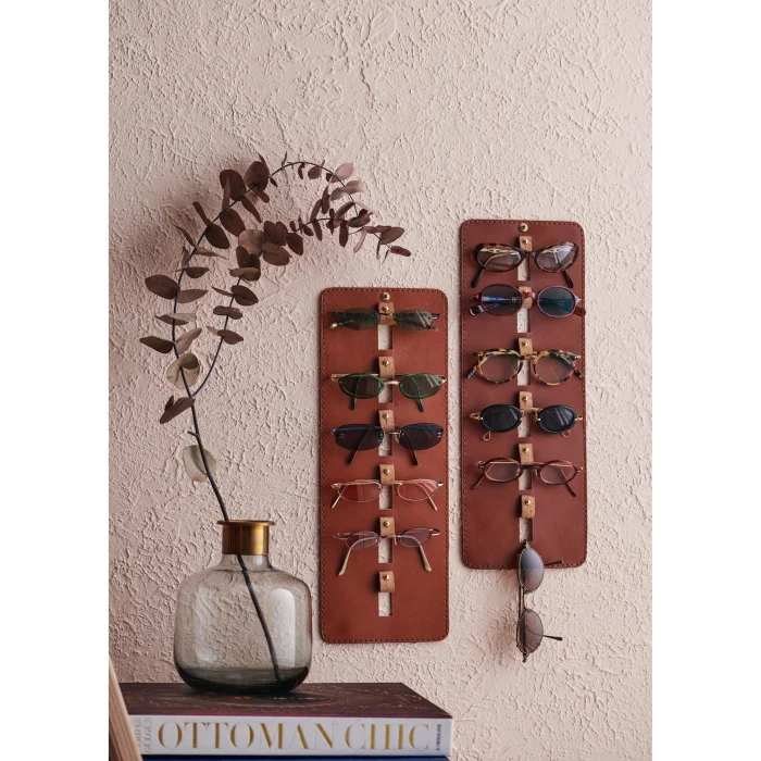 The Handmade Leather Glasses Stand is crafted from 100% genuine leather and produced entirely through handcrafted techniques, offering a refined way to store and display glasses.