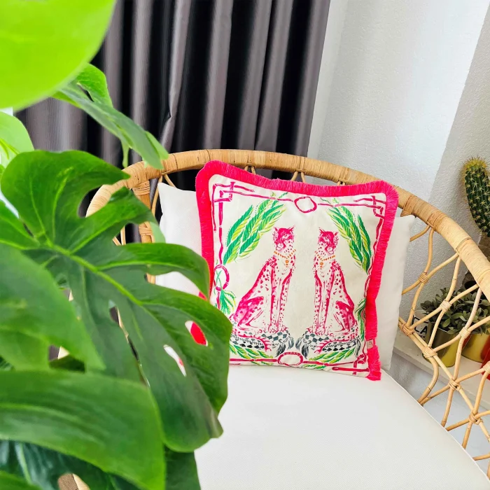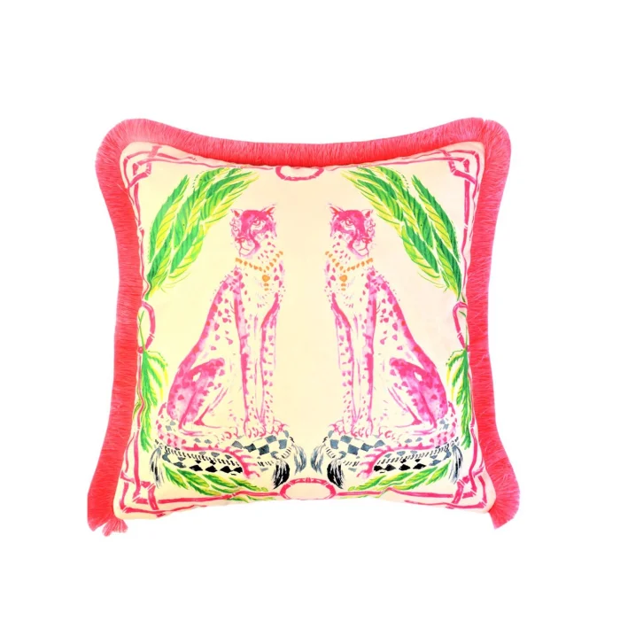 - Decorative Cheetah Patterned Velvet Throw Pillow Cover ( 45 x 45 ) Model and Design are reserved by GE Living. Double Sided Pillow - The back of our covers can be used as solid colorPink TasselsThis product contains pillowcase only. Pillow inside not includedOur pillowcases come in gift wrapping