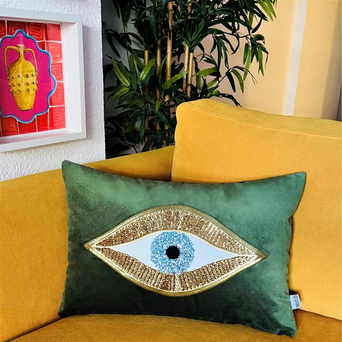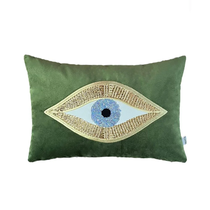 - Sequined Eye Embroidered Velvet Pillow Case (35 cm x 50 cm) - This product contains only pillowcases. Pillow inside is not included - The back and front of our pillowcases are made of velvet fabric - Our pillowcases come in gift wrapping