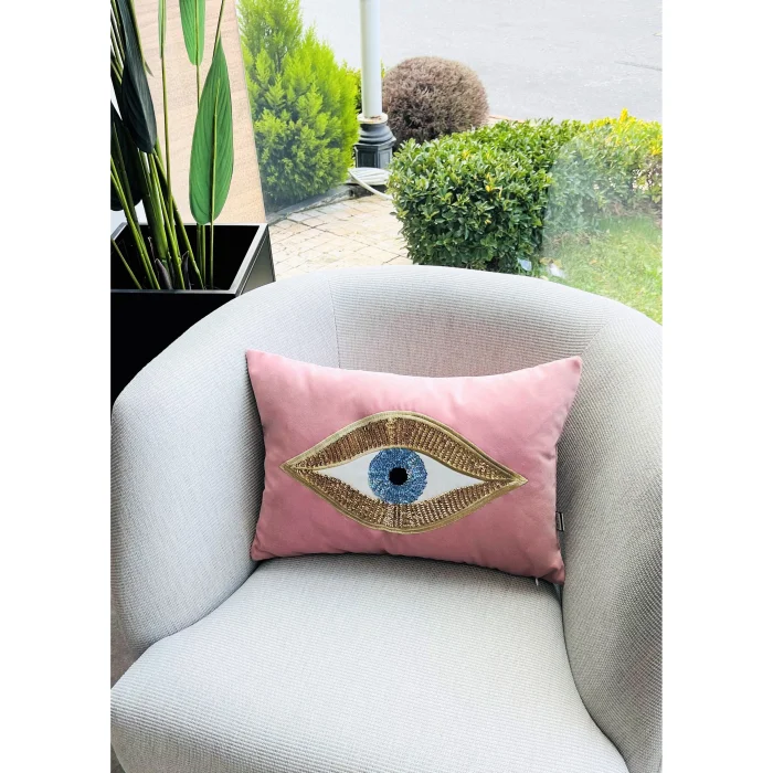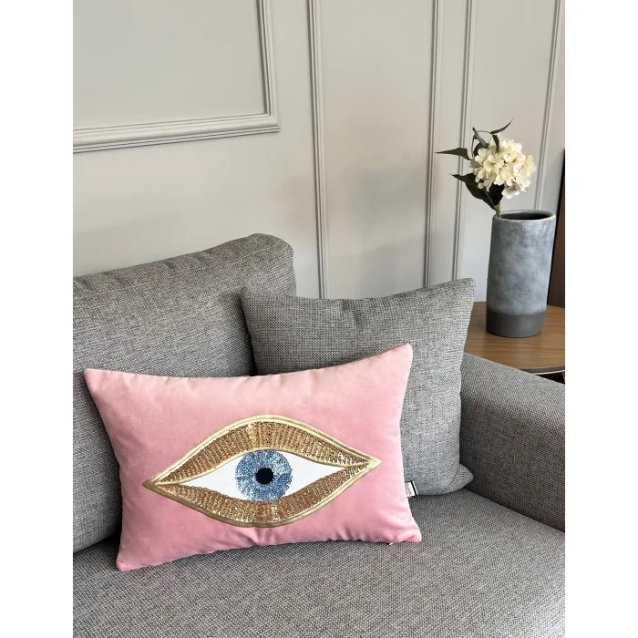 - Sequined Eye Embroidered Velvet Pillow Case (35 cm x 50 cm) - This product contains only pillowcases. Pillow inside is not included - The back and front of our pillowcases are made of velvet fabric - Our pillowcases come in gift wrapping