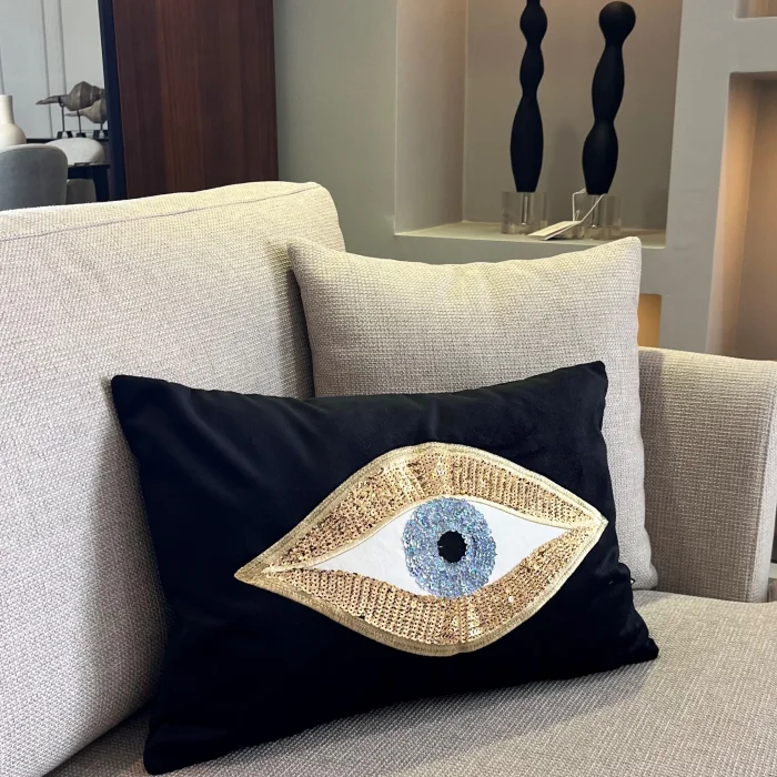 - Sequined Eye Embroidered Velvet Pillow Case (35 cm x 50 cm) - This product contains only pillowcases. Pillow inside is not included - The back and front of our pillowcases are made of velvet fabric - Our pillowcases come in gift wrapping