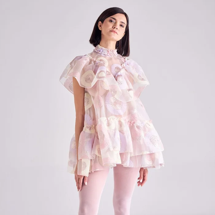Brocade processing on silk organza