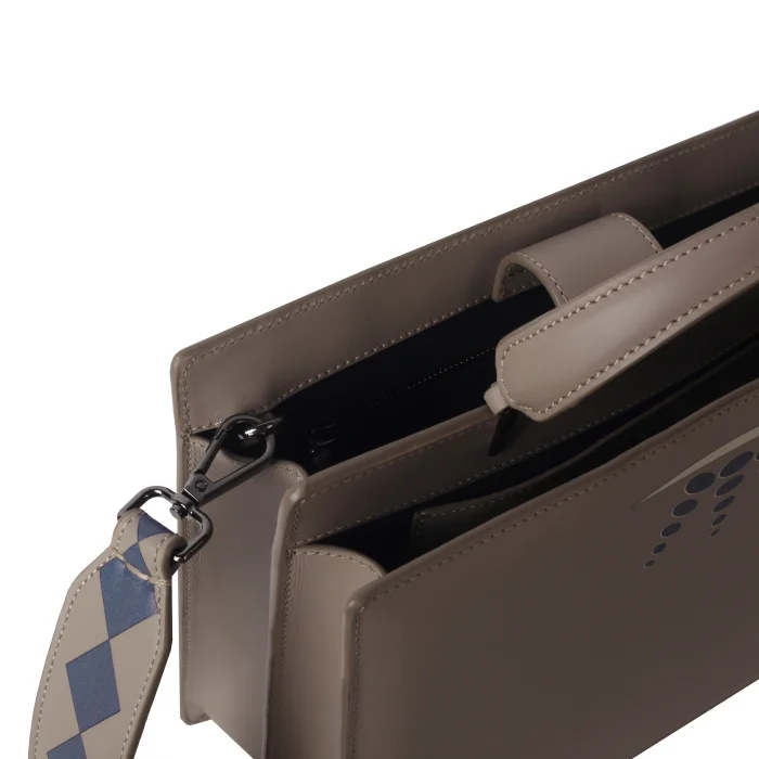 Ray Bag – Powder Pink          a100% Premium Quality Soft Calfskin Leather.           Black Nickel Bag Accessories.                   Detachable Shoulder Strap. Mink Alcantara Lining.         Bag Dimensions: Length: 22 cm – Width: 26 cm – Depth: 10 cm                               Shoulder Strap Length: 87 cm – Strap Width: 5 cm