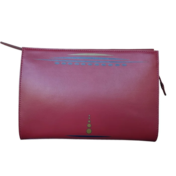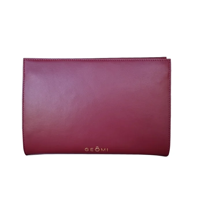 Geomi’s motifs drawn with digital art technique are printed on leather using UV printing method. Sunset clutch, which is the result of the combination of art and Turkish craftsmanship is 100% premium quality smooth calfskin leather. Sunset clutch in burgundy has gold color accessories and gold chain; thanks to its attachable and detachable chains, it is a piece that you can easily use with casual and night outfits. You can use it as a clutch or attach the chains from the side hooks and use it as a shoulder bag.