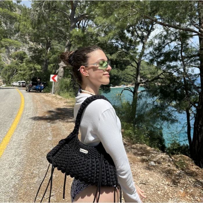 Hand-crocheted black women’s shoulder bag
