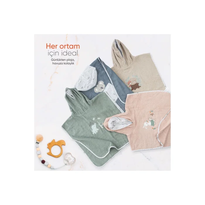 Product DescriptionGezenbebe Hero Hero Hooded Towel Baby Kids Poncho: It's Time to Dry Off with Heroes! Gezenbebe Hero Hero Hooded Towel Baby Kids Poncho is specially designed for your little heroes. This poncho in pastel shades will wrap your baby around and give you a soft hugging feeling. It offers a warm embrace after bathing with the detailed embroidery of Gezenbebe's cute heroes, Elephant, Rabbit, Teddy Bear and Koala, on its hood. Its piping, embellished with the iconic Gezenbebe pattern, makes this poncho not only a functional but also a stylish accessory. With its 100% cotton structure, it does not irritate the skin, absorbs water quickly and shortens the drying time. It's an ideal option for families looking for post-bath comfort and style!" Prominent Features:ORIGINAL GEZENBEBE SIGNATURE: Put your baby's signature on your baby's style with Gezenbebe's unique heroes and iconic pattern. HIGH QUALITY FABRIC: Gezenbebe Hero Hero Hooded Terry BabyChildren's Poncho guarantees your baby's comfort with its breathability and ultra-softness. UNIQUE DESIGN: Its cute and unique protagonists soothe your baby's mood while also adding originality to it. MULTIFUNCTIONAL USE: Not only ideal for daily use, but also for beach and after-pool. SPECIAL FOR SENSITIVE SKIN: With its hypoallergenic properties and easy washability, it is suitable for all skin types, especially ideal for babies with sensitive skin. IDEAL AS A GIFT: With its colorful, cute and unisex design, it is the perfect gift option for all babies. NATURAL DYE: Natural and harmless water-based dyes are preferred in prints. ALWAYS THE BEST FOR YOU: Customer satisfaction is at the forefront for us. With your feedback, we are constantly improving our products and striving for excellence. Technical Details:High Quality Material: Made with premium materials that are lightweight, breathable and quick-drying. Baby Friendly: With its 100% cottony texture, it provides maximum comfort and dryness for your baby's sensitive skin. Usage Time: Our ponchos will be a companion that will not leave your baby's side until the age of 5. Unique Color Options: With attractive color and pattern alternatives such as Bunny, Elephant, Koala and Teddy. Care Instructions: Wash at 30 degrees and dry without exposing to direct sunlight. Gezenbebe Hero Hero Hooded Towel Baby Kids Poncho both reflect your style and maximize your baby's comfort. His smile is the most valuable return for us.