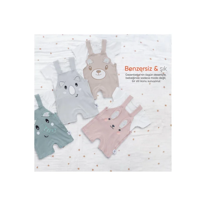 Product Description:Gezenbebe Hero Short Sleeve Baby T-Shirt & Embroidered Salopet Set: Style and Comfort in Perfect Harmony! With the highest level of comfort offered to your baby's delicate skin, make him feel the quality of Gezenbebe. The exquisite embroidery details of Gezenbebe's unique heroes, the Elephant, Koala, Teddy Bear and Rabbit, gently wrap around your baby's skin, making him both stylish and comfortable. Standout Features:GEZENBEBE'S UNIQUE DESIGN: This set offers more than just a Baby T-Shirt & Embroidered Salopet Set; It is a fashion statement of Gezenbebe with its special patterns and detailed embroidery. MEET THE SOFTNESS: With the unique softness offered by the 100% breathable cotton fabric, your baby's skin meets its most comfortable form. UNIQUE GEZENBEBE SIGNATURE: Thanks to our iconic designs and cute mascots, your baby will feel comfortable and look stylish. PLAYFUL AND MODERN: With modern and fun design details, your baby's energy will never be lost. UNISEX ELEGANCE: With its fashionable patterns, your baby feels ready in every sense. EASY TO USE: Nickel-free snap buttons offer quick and convenient use. LIVE QUALITY: We value customer feedback and continuously improve our products for the best. Technical Details:Size Options: 0-3 months, 3-6 months, 6-9 monthsColor Options: Bunny, Elephant, Koala, Teddy (Organic). Review the size chart before completing the order. Make every moment of your baby's life precious with Gezenbebe. Its comfort and elegance are important to us. Feel that we are with your baby with this set that will make every day special!