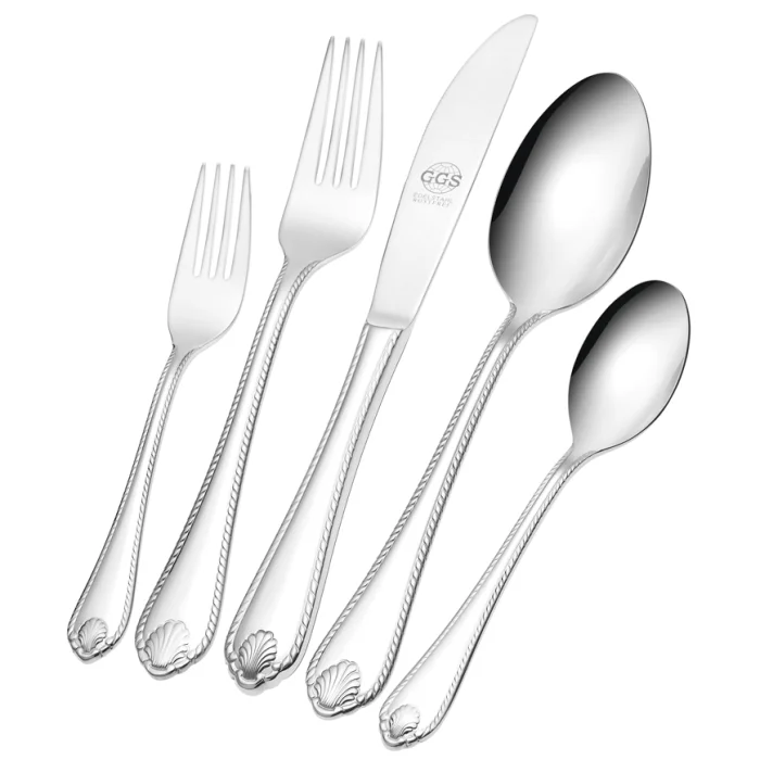 Set Contents: * 12 tablespoons * 12 Dinner Forks * 12 Pieces Dinner Knife * 12 Dessert Spoons * 12 Dessert Forks * 12 Dessert Knives * 12 Teaspoons * 1 Large Bucket * 1 Small Scoop * 1 Cake Spatula * 1 Piece Sugar Tongs * 2 serving spoons * 1 Salad Fork * 1 salad spoon * 2 Lemon Forks * 1 Sauce Spoon * 1 Butter Spoon