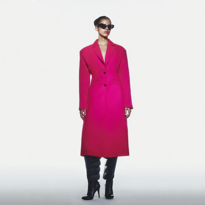WOOL EFFECT PADDED COAT MODEL LENGTH