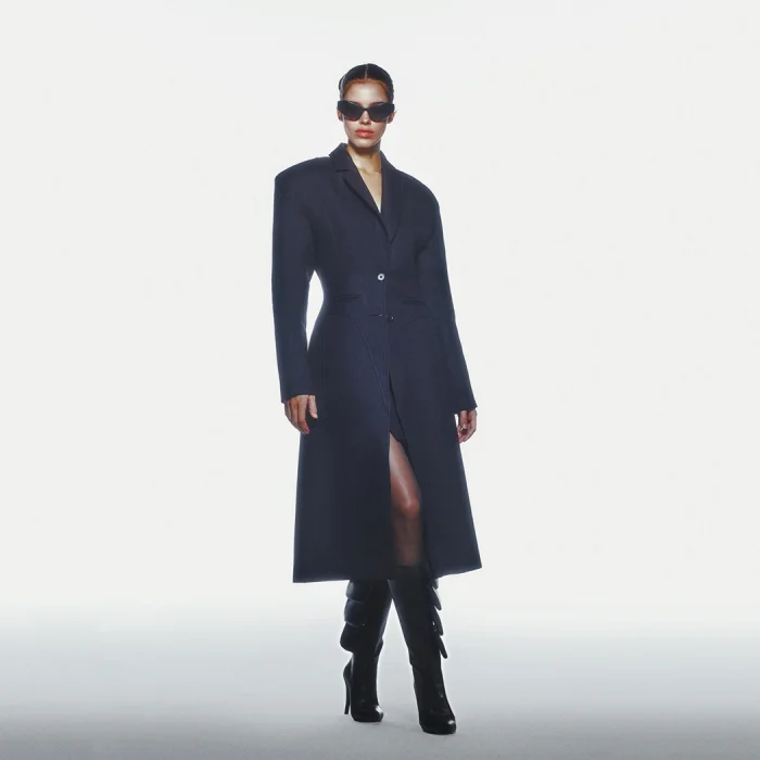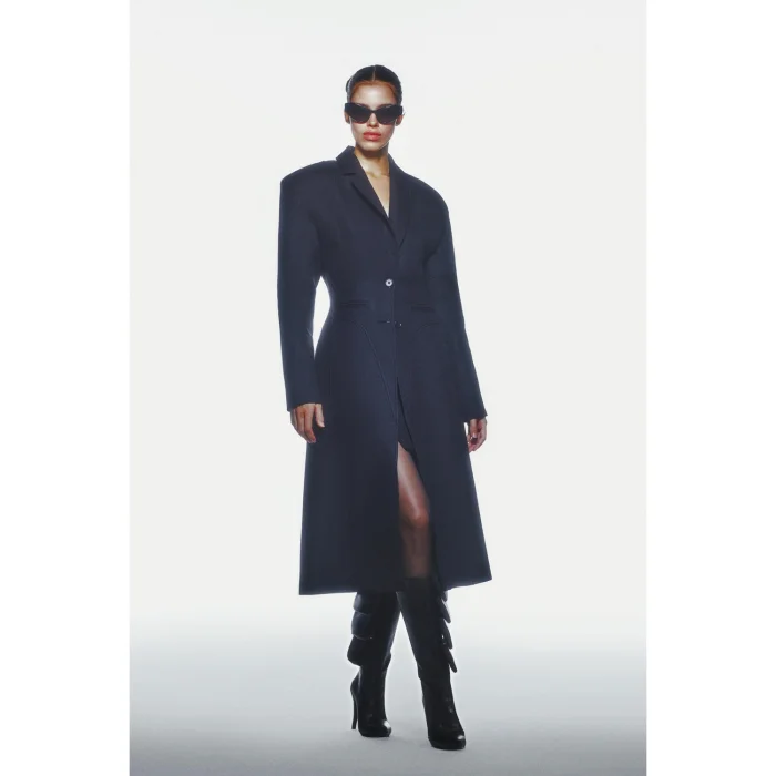 WOOL EFFECT PADDED COAT MODEL LENGTH