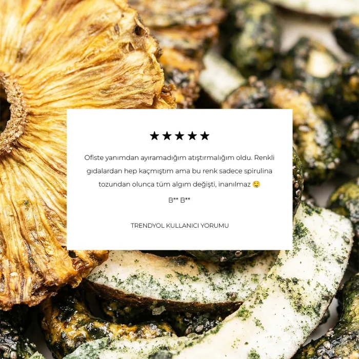 Ingredients: Cashews, dried pineapple, dried coconut, honey, spirulina powder, chia seeds, and Himalayan salt.