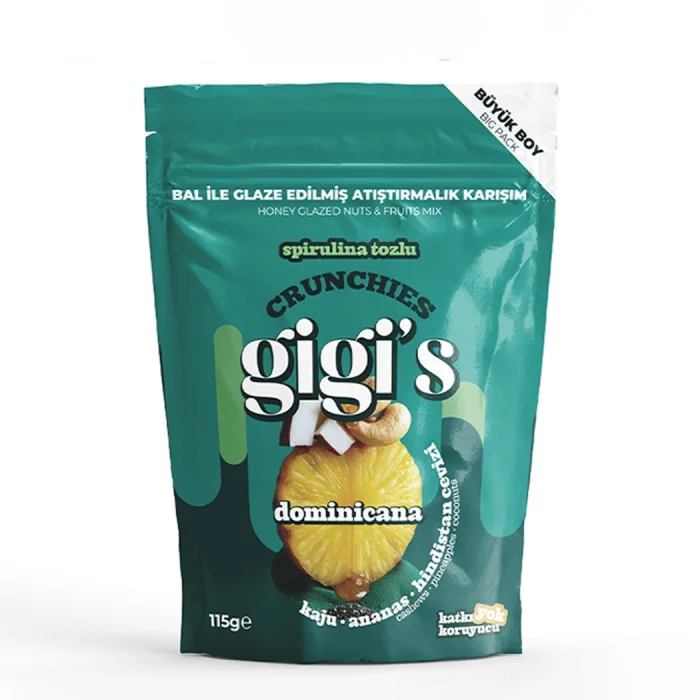 Cashews, dried pineapple, and dried coconut are glazed with honey and sea salt. Introducing Gigi's Crunchies Dominicana.