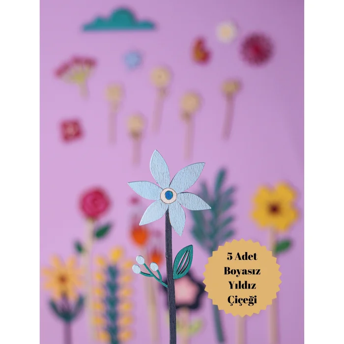 Our unique wooden flower set, which combines creativity and the elegance of nature, offers you a unique art experience with its elegant wooden materials. Each set includes five gorgeous flowers, allowing you to paint them freely using your own color palette. While it offers the chance to personalize each flower with the paint and brush included in the painting kit, it brings naturalness and elegance in homes, offices or special events. Package includes: 5 pieces of wooden flowers (18-23 cm);