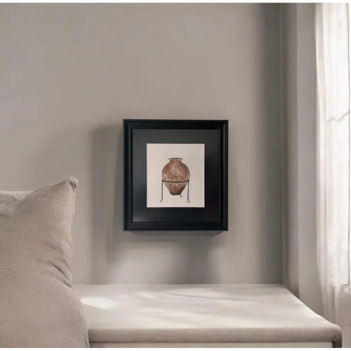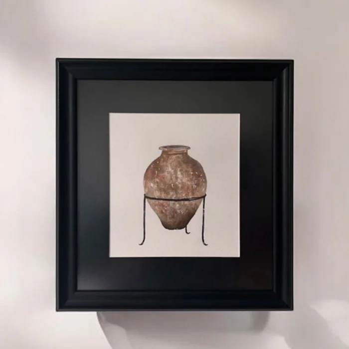 • Color: Watercolor work in brown tones, black passepartout and wood-patterned frame
