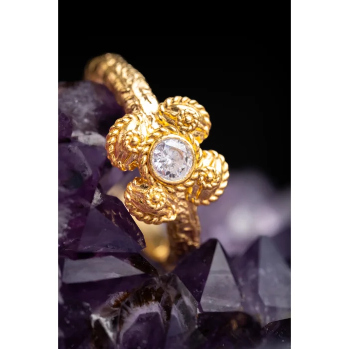 The perfect meeting of beauty and luck! Giwa's Lucky Clover Ring is a unique touch to your style with its elegant design and sparkling details. 18K 40 micron gold plated on 3.5 gr silver -Chlorine can cause wear and tear in contact with perfumes and chemical products. -Original designs with GIWA stamp. -Handcrafted in Istanbul.
