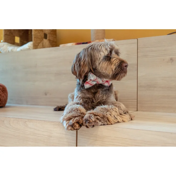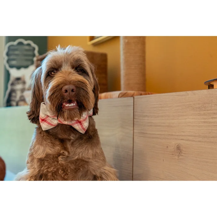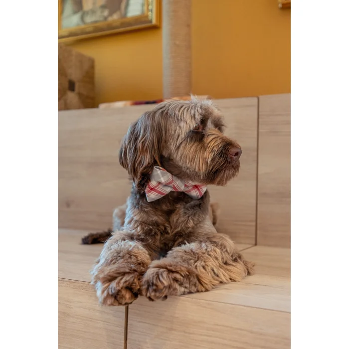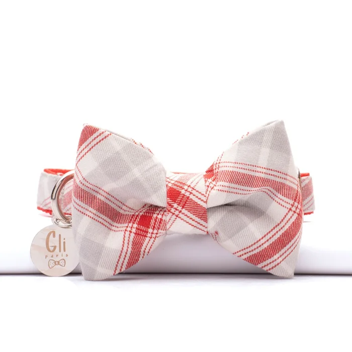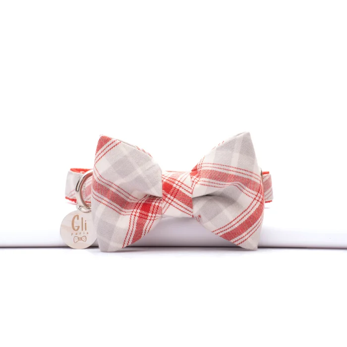 Product: Merida Gri Kırmızı Ekose Papyonlu Köpek Boyun Tasması