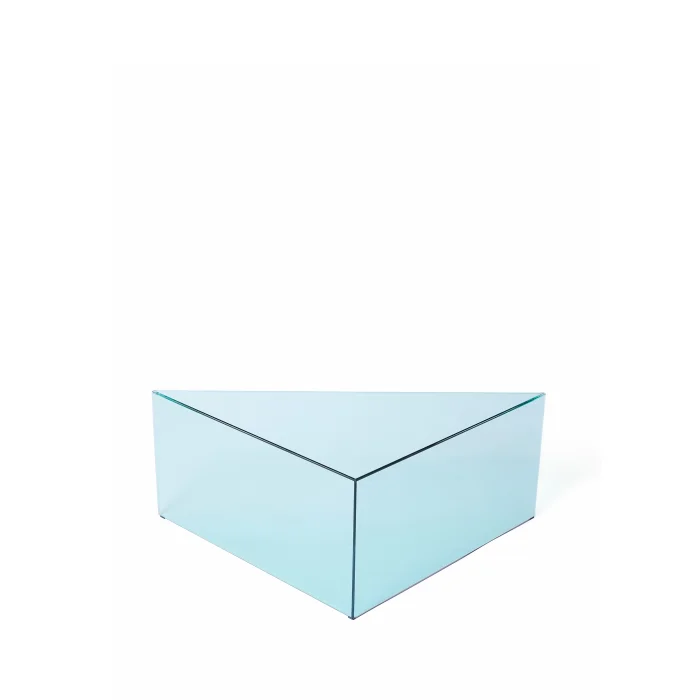 The material of the product is glass, triangular in shape. There are two different heights. It is 70 x 70 x 99 cm. The height is 35 cm. Three colors are available in the collection. blue, green and bronze.