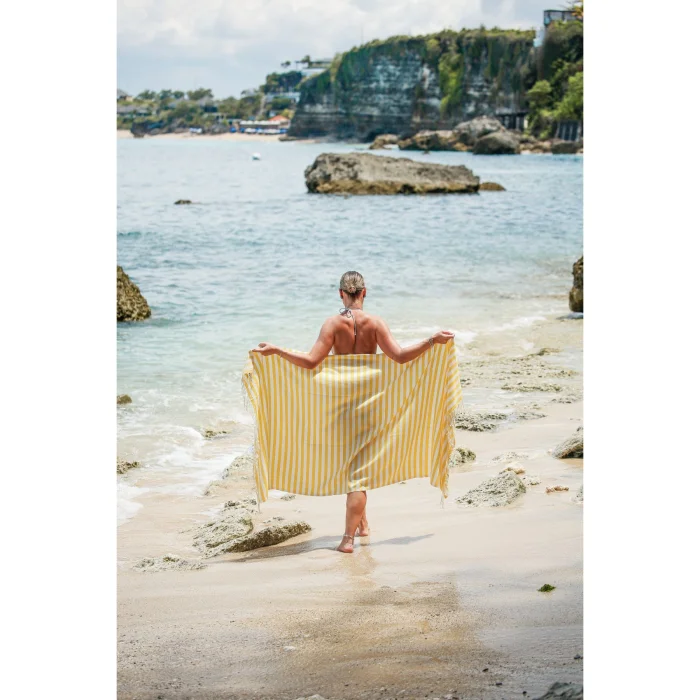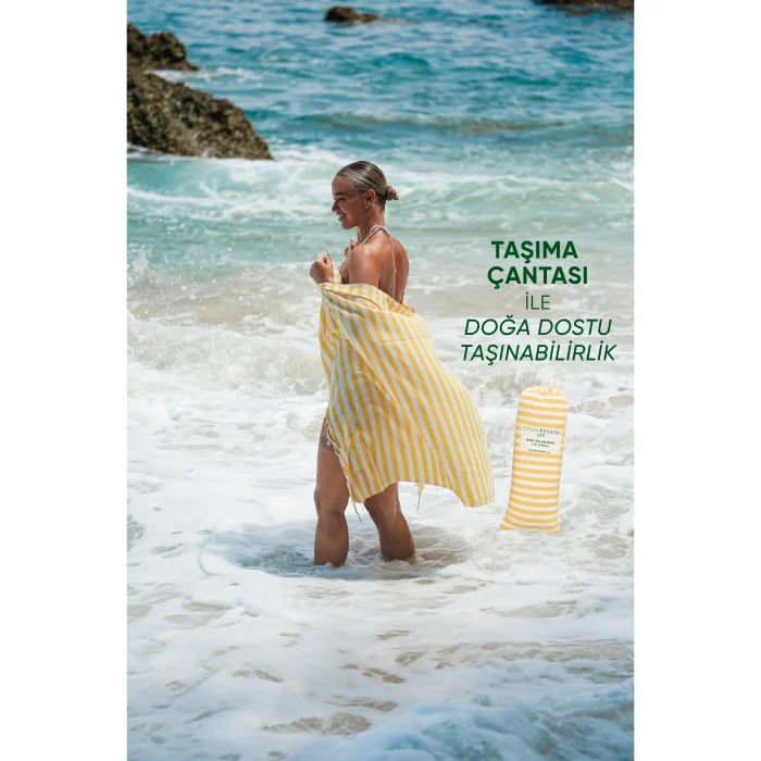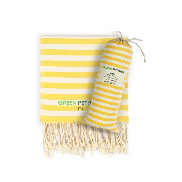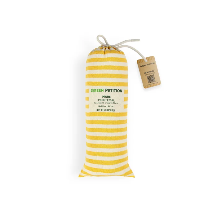 Environmentally friendly: 10 plastic bottles used for each peshtemal were turned into polyester threads. Sustainable: For each loincloth, 5 waste t-shirt fabrics were recycled into improved cotton yarns. Dye-free and Chemical-free: There was no use of dyes or chemicals at any stage of production. We obtained the dyed fabrics of the original materials of your peshtemal. Sea Friendly: We saved 5000 liters (1320.9 gal) of clean water for each loincloth.  FEATURES Light and Portable: Don't worry about portability. Thanks to its 190 gram weight and light structure, it takes up minimum space in your beach bag or special carrying case. Ideal Size: Your 90x170 cm loincloth makes your beach experience more comfortable with its large size. Multi-Purpose Carrying Bag: You don't just buy a loincloth, you can use the practical bag of your loincloth for your beach accessory. Recycled and Reusable Package: You can reuse the special bags that are recycled and have dimensions of 34 x 14 cm. Wherever you can take your peshtemal while traveling in a special, sustainable bag, you can't easily keep it down.